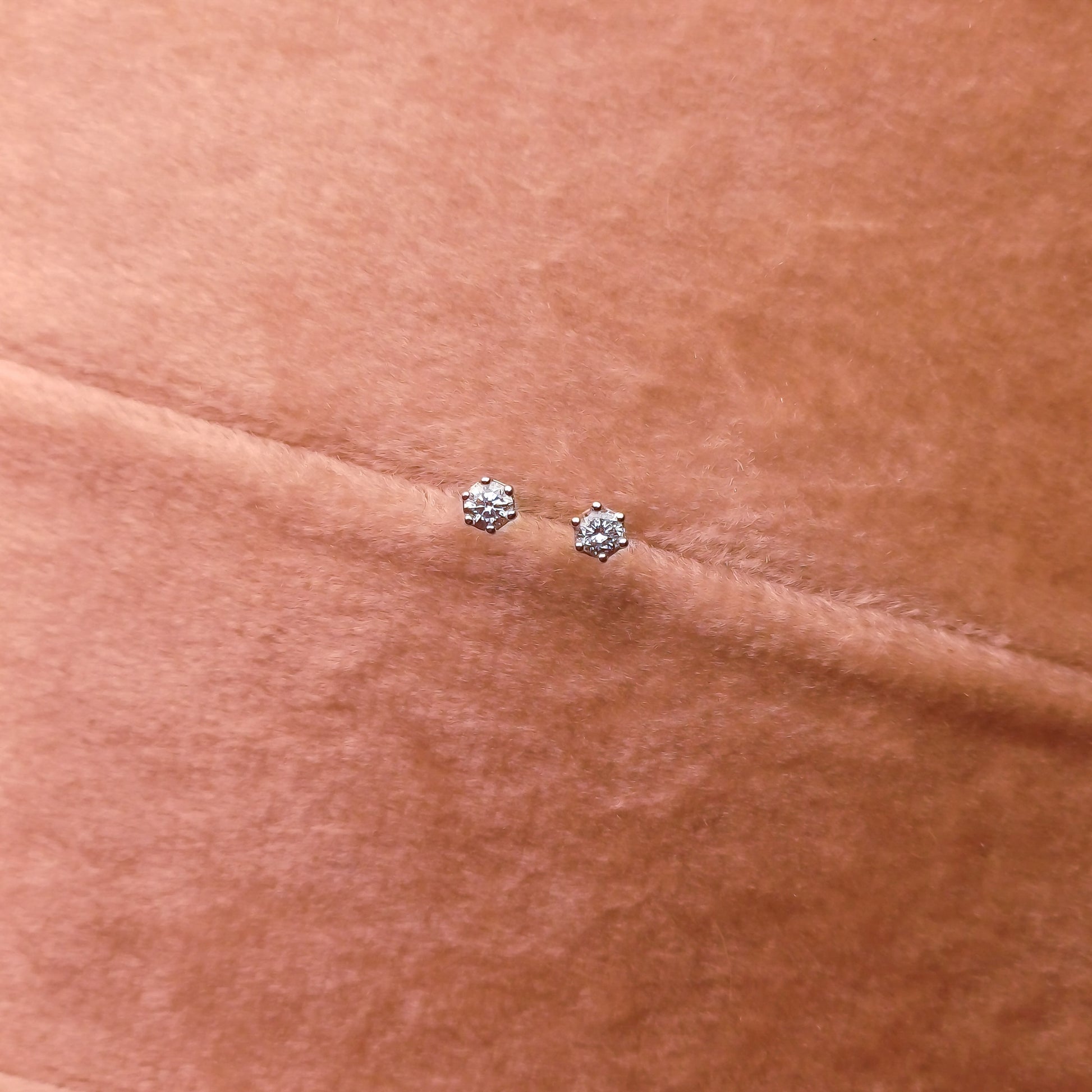 Los studs perfectos para el día a día. Son ideales para segunda perforación o como primer par. Están elaborados en oro blanco de 14 kilates y diamantes naturales de apróximadamente 2.7 mm.